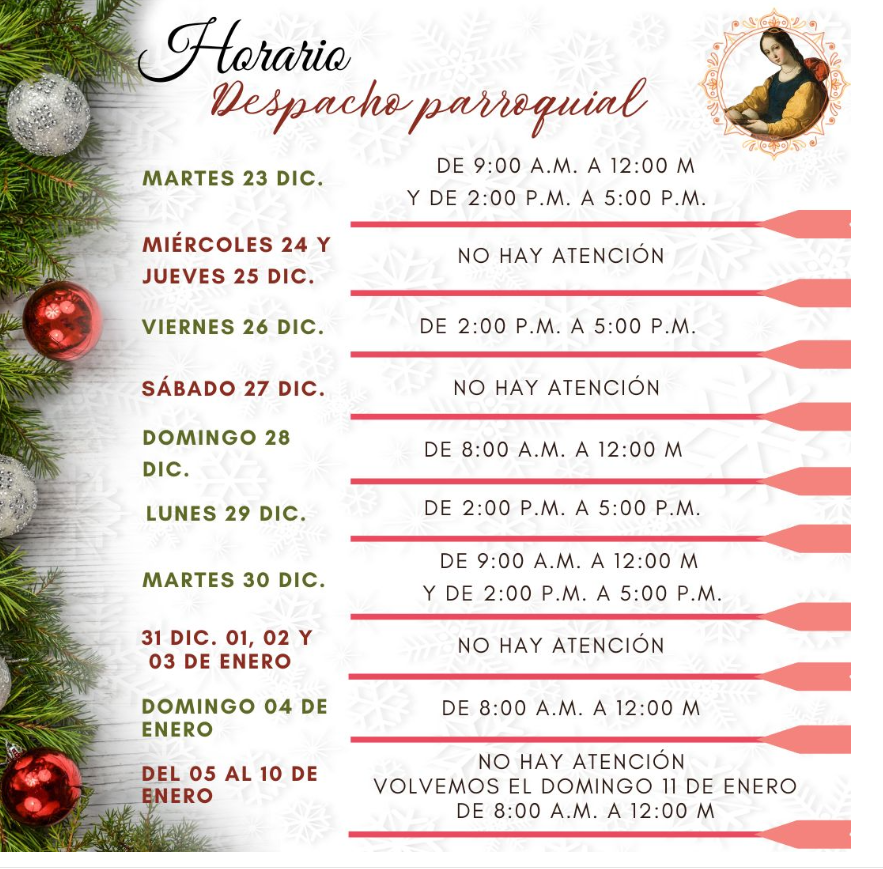 - Los días sábados y festivos no hay atención en el despacho parroquial.